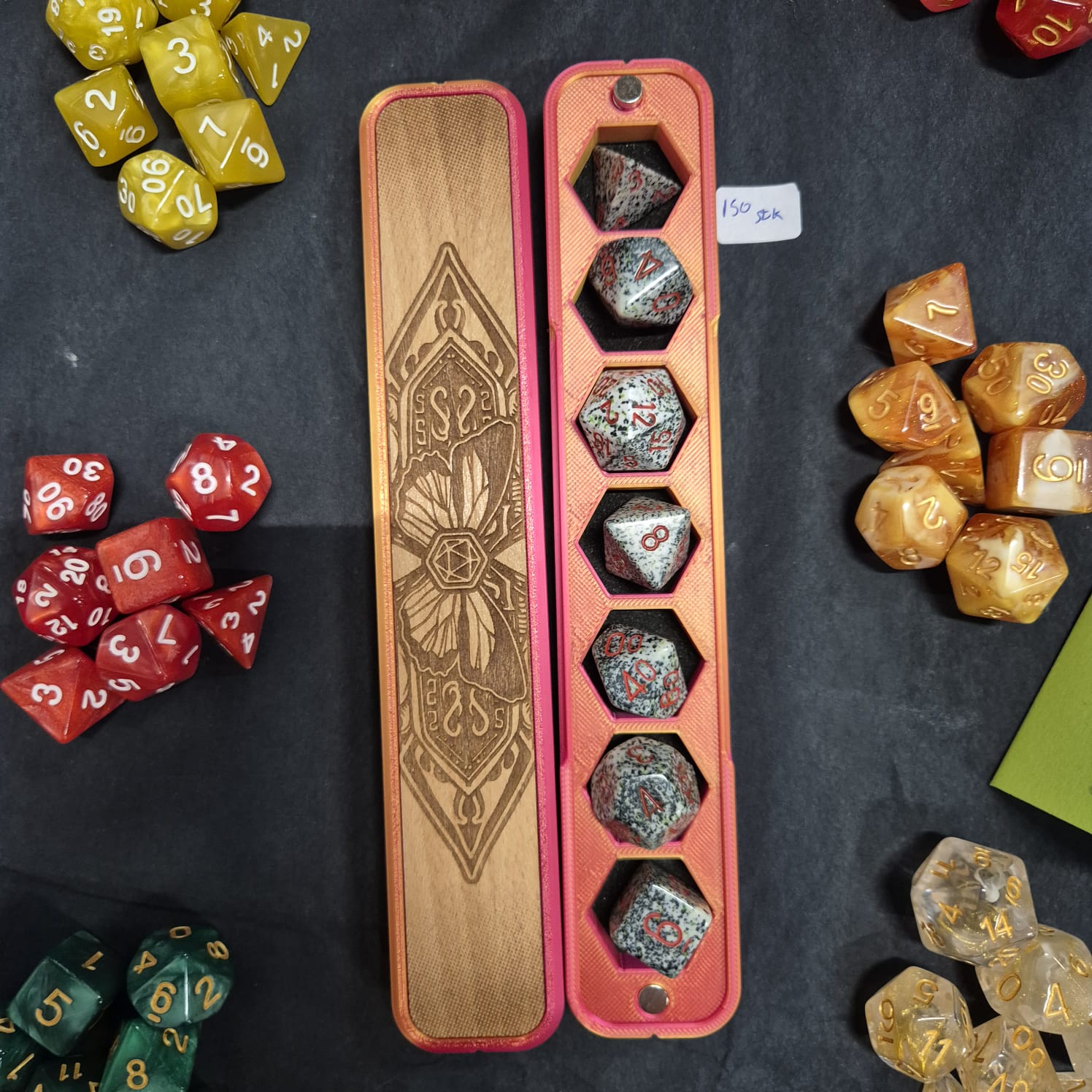 Keep your RPG dice safe and stylish with this charming wooden dice case. Crafted for durability and a perfect fit, it’s ideal for rolling into your next adventure without losing a single die. Durable wood meets playful design—because your dice deserve a cozy little home too!