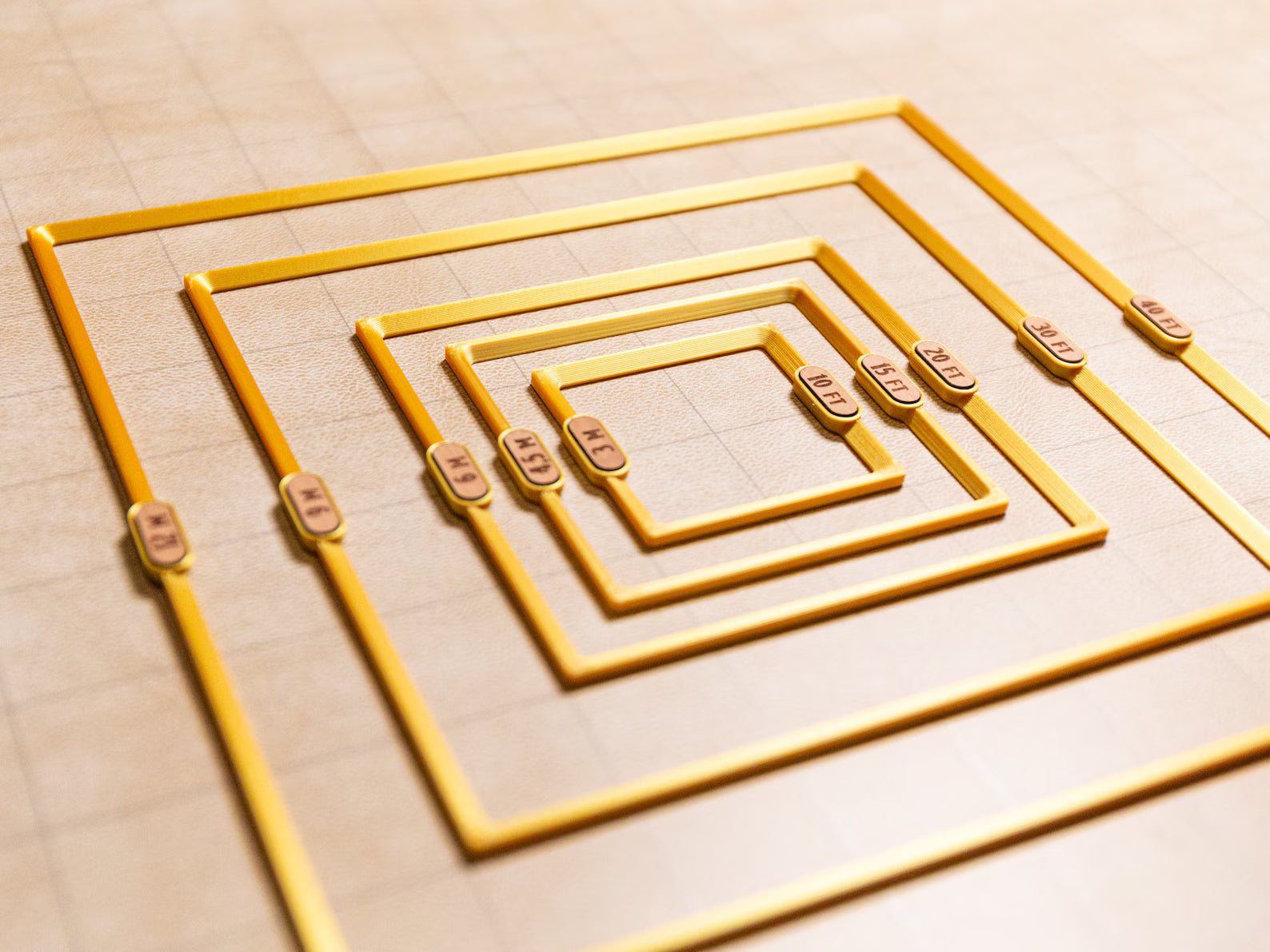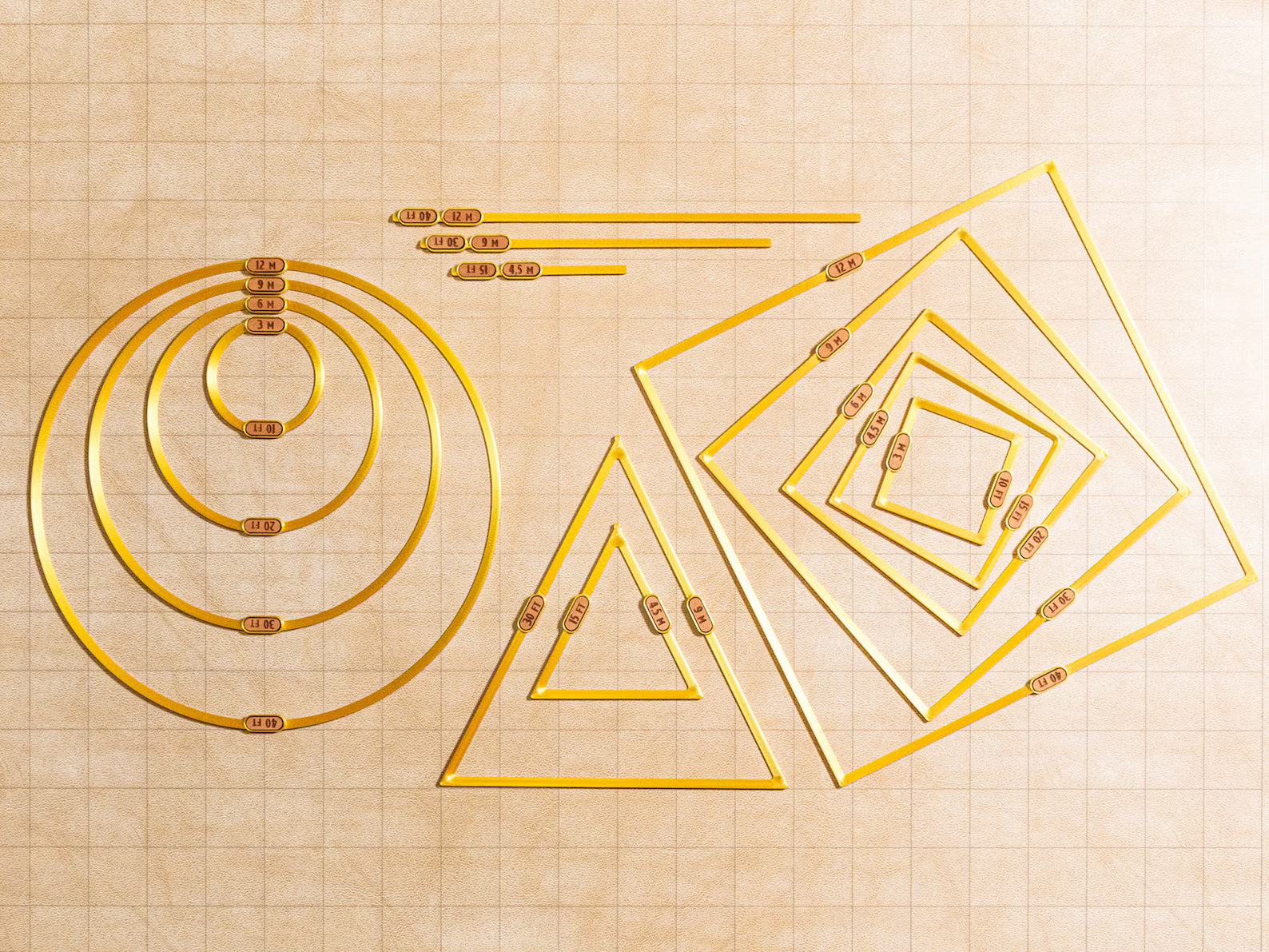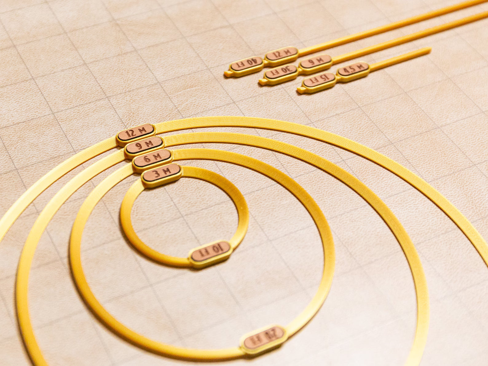 No more fumbling with measuring tapes or guesswork! Each template is crafted from silky gold PLA plastic for a touch of elegance, while the built in laser-engraved hardwood tags clearly display distances in both feet and meters. Perfect for Dungeons & Dragons and other RPGs, these templates help you quickly and accurately visualize spell impacts during gameplay. Upgrade your gaming sessions with these practical and stylish templates!